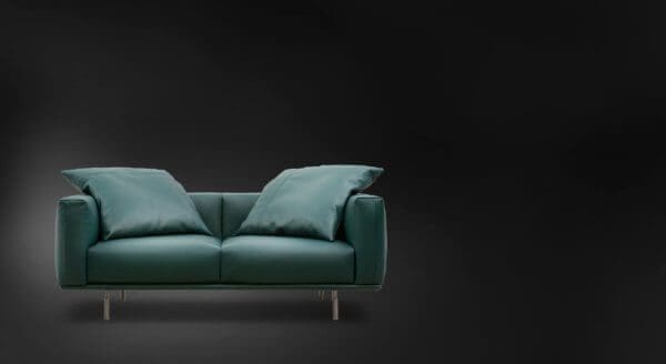 Two- or three-seater linear sofas with noble, reassuring esthetics. The clean, geometric and sharp lines are joined by the light touch of the double feet that raise it from the ground. A moderate seat depth and a compact backrest illustrate the accurate study of the proportions, to guarantee outstanding comfort. Large feather cushions, that can be scattered randomly, repeat the relief stitching of the sofa’s armrests, giving the composition a distinctive, elegant and contemporary appearance. Available with completely removable leather or fabric covers. The feet are supplied with a matt burnished finish.