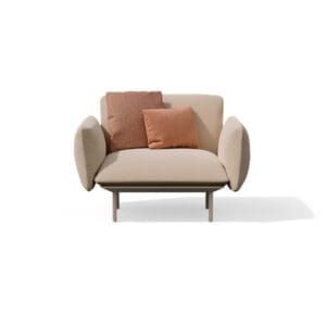The sleek, understated SENJA collection by celebrated Belgian design firm Studio Segers for TRIBÙ debunks any myth that minimalism and comfort cannot coexist. On the contrary, this is one of the most indulgent outdoor seating groups in the TRIBÙ anthology. Structured, Nordic- style cushions grace the 1-seat, meridienne, and modular sofas; their voluminous piped seam adds a clean edge, while their generous fill cocoons the body. The armchair is a stunning coordinate, detailed with woven, hemp-based Canax® that stretches vertically along its armrests. SENJA offers its frames in powder-coated aluminum or solid planation teak; it is further customizable with your choice of over 100 nature-inspired fabrics. Integrate a table topped with teak or glazed lava stone and see how beautifully… and functionally… SENJA rises to any outdoor occasion. T-TABLE The T-TABLE by TRIBÙ is elegance to the letter. Its chic, simple design features a single or double pedestal base, a round or oval tabletop, and a hand-glazed surface made of 400-year- old Vesuvius lava stone. When this material is baked at a high temperature, a subtle craquelure results, which means that each T-Table utterly unique. The stone is also heat, water, UV and stain-resistant… not to mention, easy to maintain. Available in multiple heights and dimensions, TRIBÙ’s T-Table brings a variety of possibilities to your al fresco dining experience.