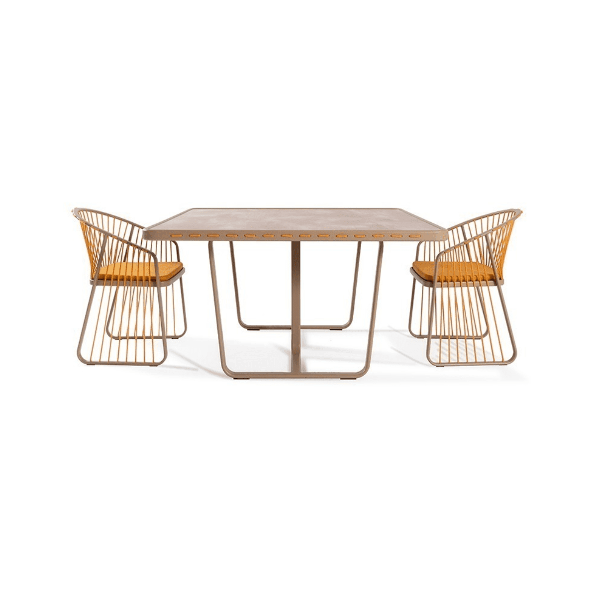 Sally was born from the idea of creating a collection of outdoor furniture that introduces new constructive and formal solutions: a light and elegant aluminum structure is enriched through the innovative design of the cord that enters and exits the frame, creating a new tensile structure. Sally does not represent a single product, but an articulated family that interprets contemporary living with a strong and recognizable sign.