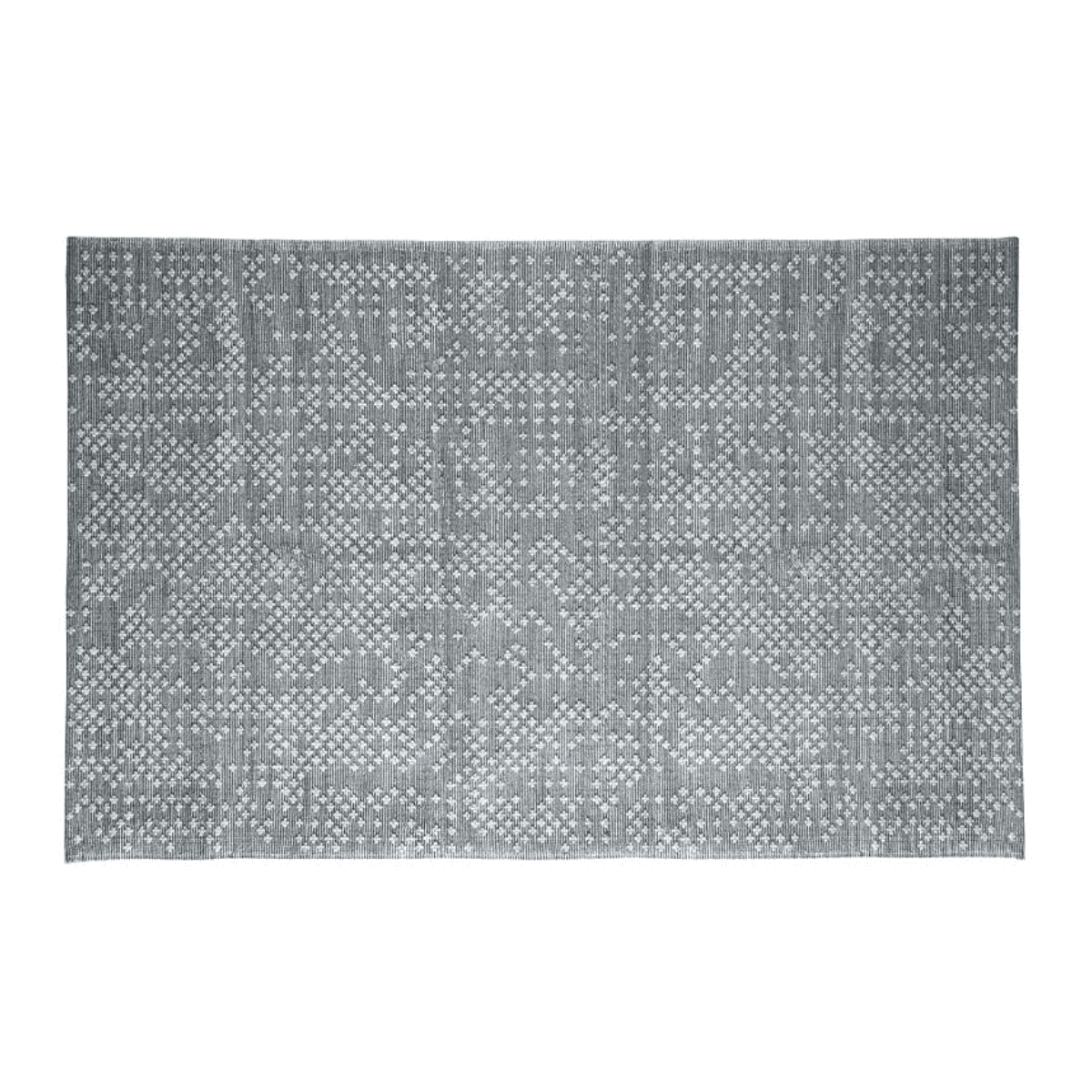 “This collection of outdoor rugs was born out of the charming tradition of artisan weaving.” Paola Navone explains. “Soft and thick, these rugs are made with macro yarns in three different colour shades. Grain weaving creates abstract geometric same-colour patterns in the weft. Their poetic, slightly distressed effect tells of the sense of living that is inherent in a Mediterranean soul.”