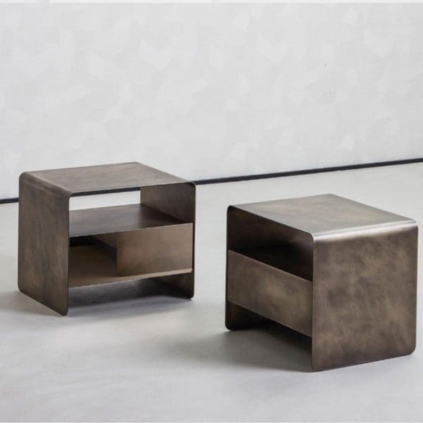 Foglio is a nightstand in metal, with light, clean and sharp lines.