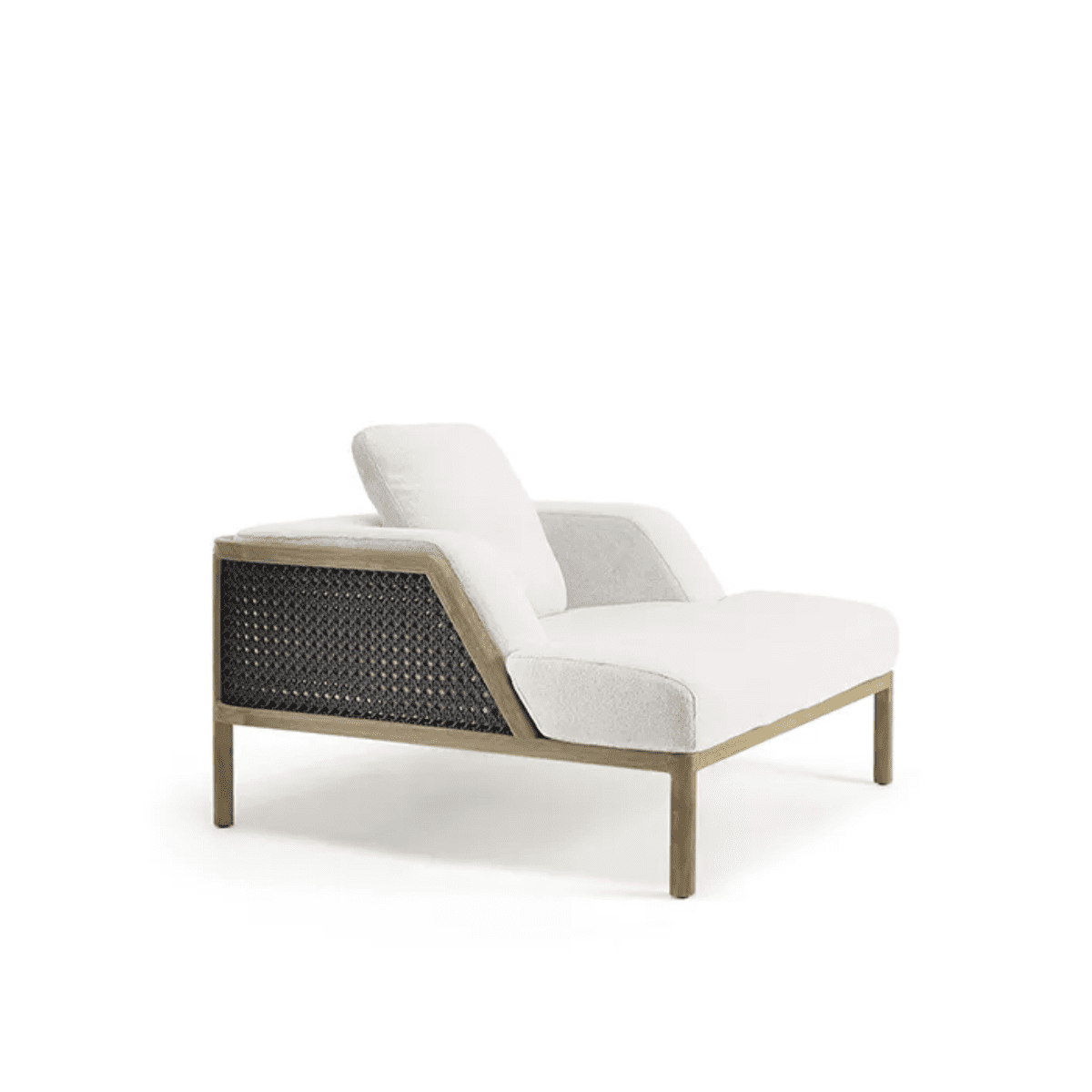 The weaving, inspired by the classic Vienna straw, is made of synthetic material, resistant to UV rays and abrasion. The large proportions, the soft cushions made with soft-touch fabrics and specific for outdoor use, increase the sense of comfort and well-being.