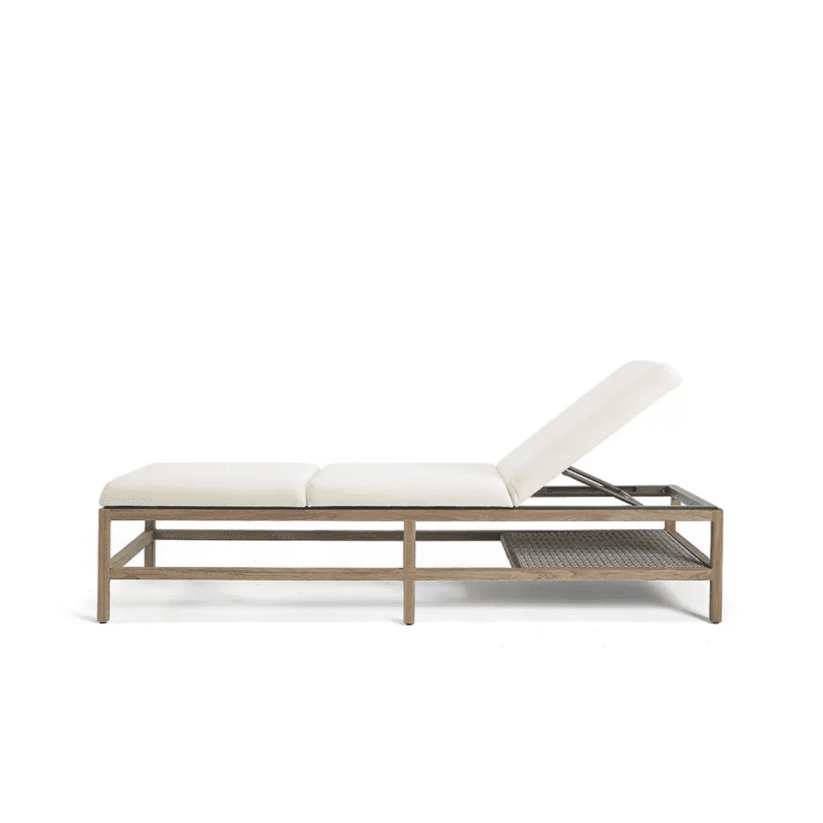 A new collection of lounge chairs destined for large and prestigious outdoor spaces. The pickled or natural teak structure with metal core is covered with large cushions that welcome the body with a feeling of deep and enveloping comfort.
