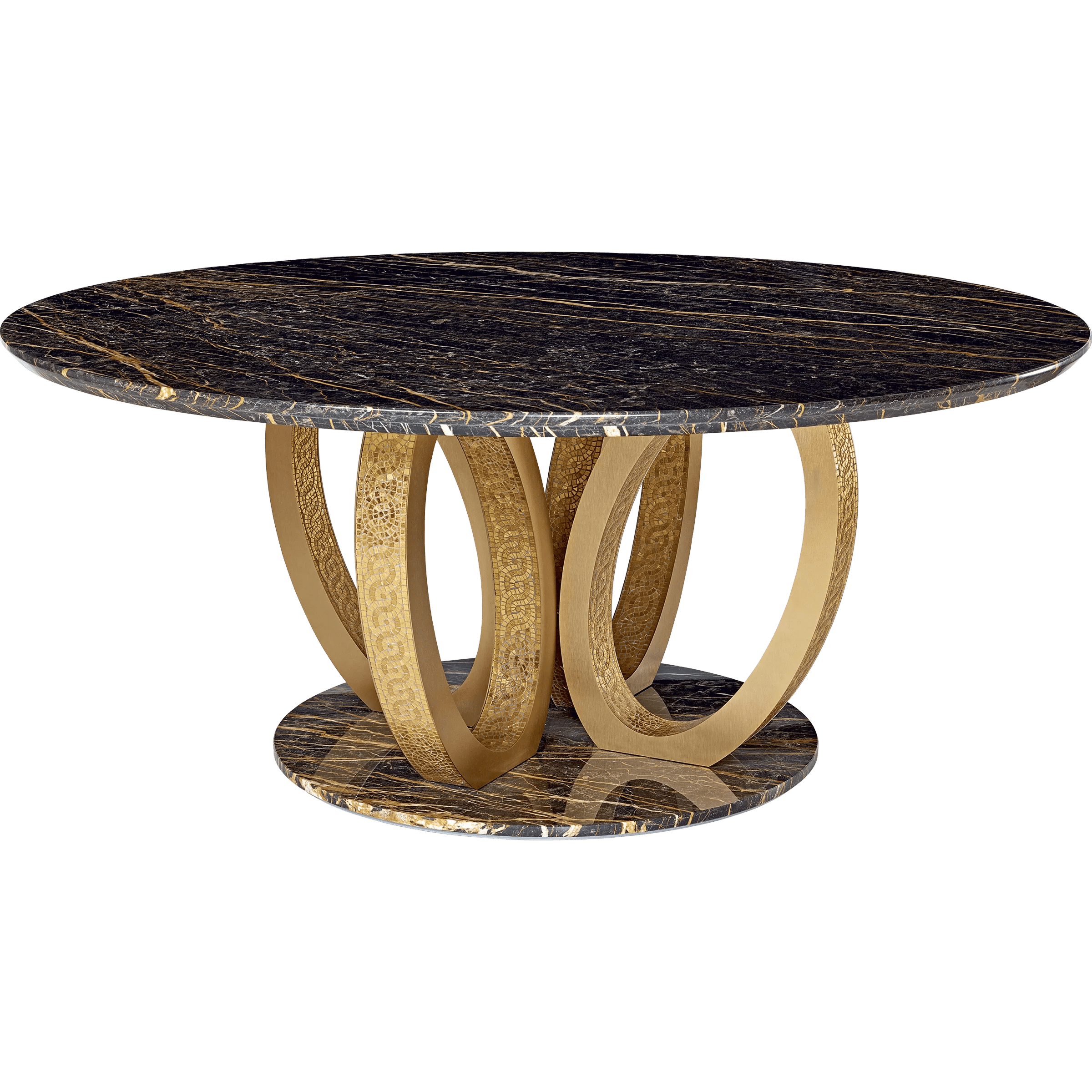 Soft and elegant Art Deco lines. A sinuous play of full and empty spaces, and a refined play of proportions. Pure materials and special processes. A table that recalls the idea of movement, fluid and enveloping.