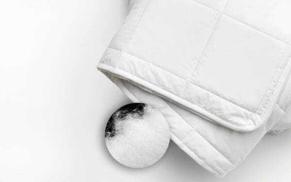 Used in combination with mattresses that are filled with the same material, it enhances the delightful feeling of sleeping while cocooned in a sort of protective nest.