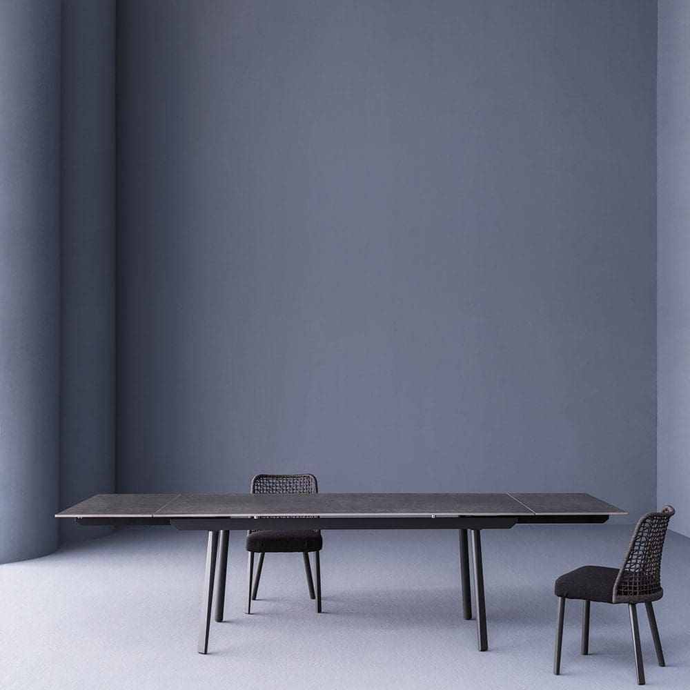 The extendable table of the Emma collection, with its sweet and graceful lines, is designed to create dining areas that can be adapted to different contexts.