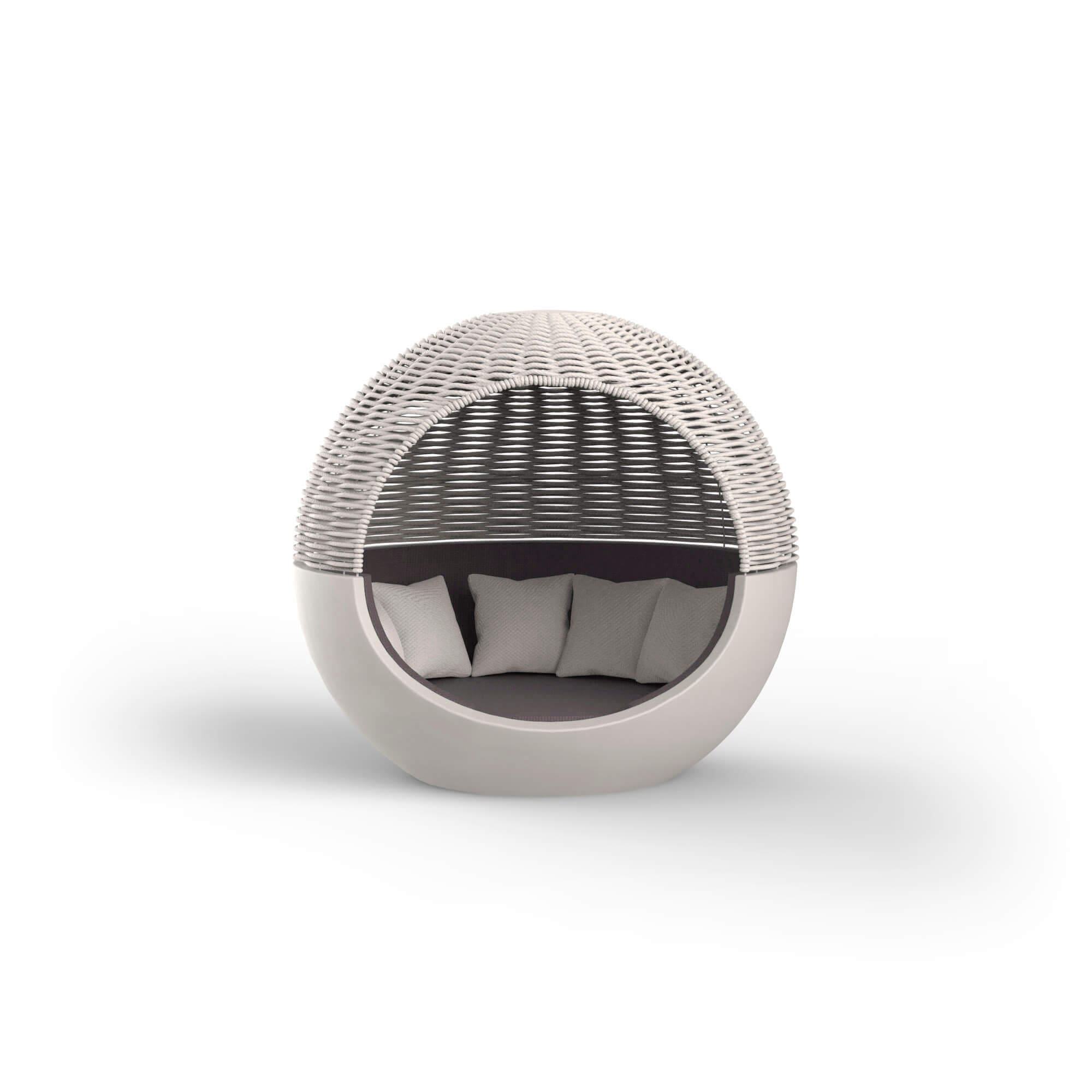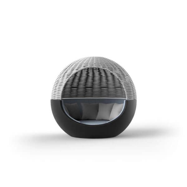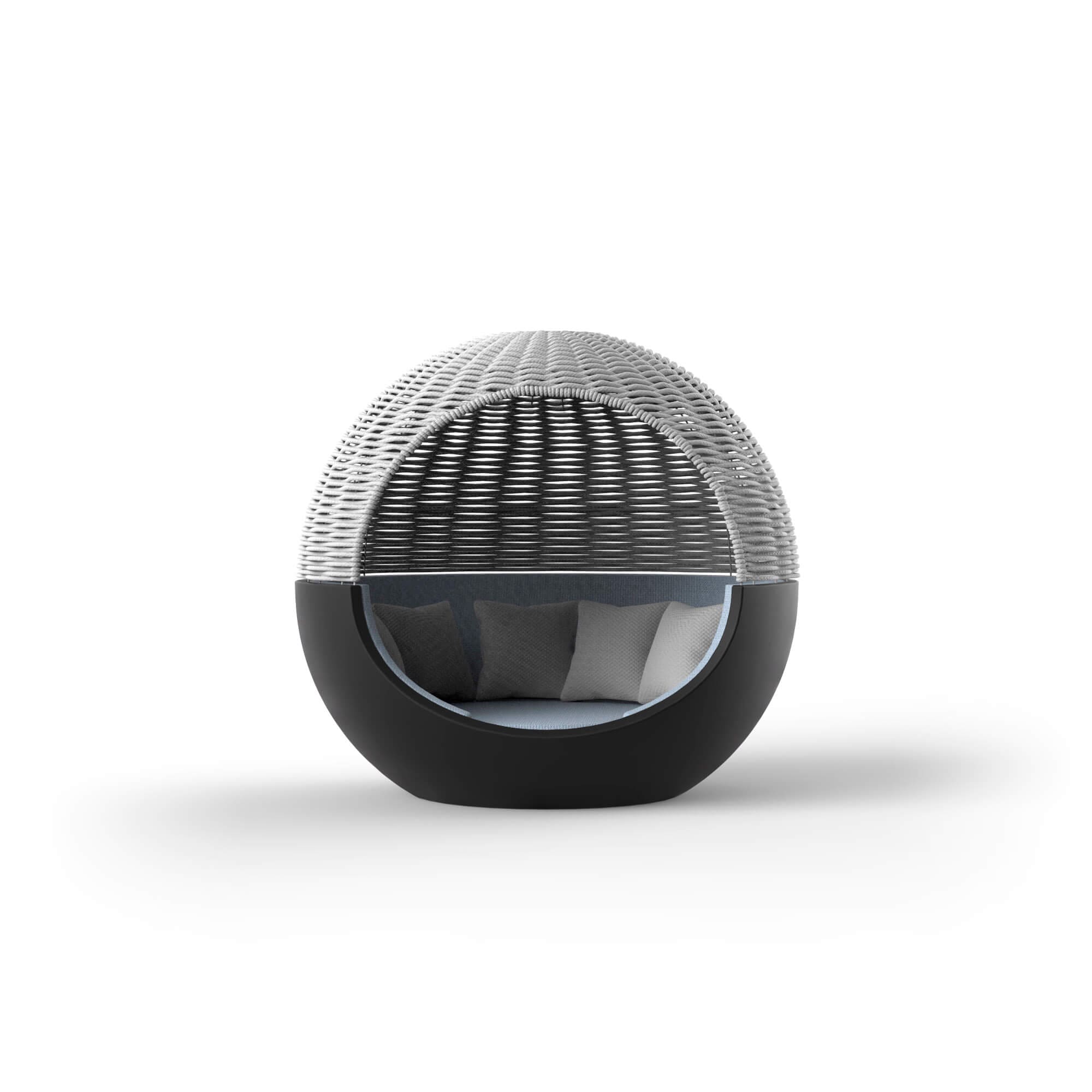 Designed by Ramón Esteve for Vondom, the main characteristic of the Moon Daybed is its circular shape and the rotating system on which its base rests, which allows the piece to rotate on its own axis. Articulated through two hemispheres,